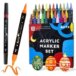 - 🎨 [Dual Tip- Brush Marker and Fine Tip Marker] Each acrylic marker come with a brush tip and a fine tip, 3.2mm brush tip nibs are ideal for creating medium or bold strokes, 1.9mm fine tip nibs make pens ideal for detailed drawing work.