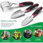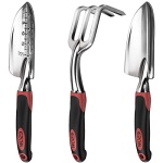 • [COMFORTABLE HANDLES]: Ergonomical and soft-grip handle, which made of High Quality TPR material that reduces the pressure on the wrist and hand. Reduce hand pain and fatigue while digging, weeding, planting and cutting. Also there are suitable for large or small sized hands. More labor saving and more comfortable in long-term grip and use. A hole at the top of each handle for clutter-free storage