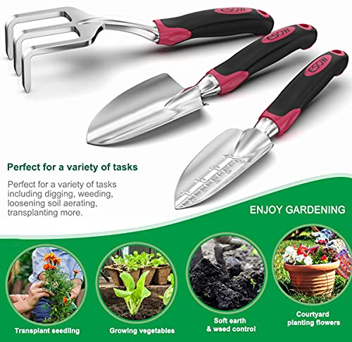 Garden Tool Set, 3 Pieces Aluminum Heavy Gardening Kit Including Hand Shovel, Transplant Shovel and Hand Rake with Soft Rubber Non-Slip Handle, Peoplewholovegardeningenjoy apleasant Experience $28.99 $13.99