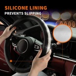 • EASY INSTALLATION: HOTOR car steering wheel cover is easy to install with 3 steps. Just cover the steering wheel with the product from the top, pull it to cover the whole steering wheel, and adjust the product to snugly fit on the steering wheel.