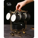 - Cappuccino Cups With Stand: Lareina large cappuccino cup set of 6 is sold with a metal stand to organize the cups and saucers after use. It helps greatly to get rid of the mess in your kitchen and keep it tidy and well-organized way. The stand makes moving the cups safer and easier