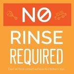 - Disinfectant with no rinse required, even on food contact surfaces and children’s toys