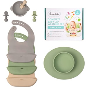 UpwardBaby Led Weaning Supplies – Suction Plates for Baby – Spoons Self Feeding 6 months Suction Bowls Silicone Plates – Toddler Plates Bowls Self Eating – Infant First Stage BLW Utensils 6-12 Months