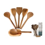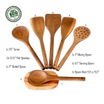- 🎁 Giftable Cookware Set Includes 11-13″: (1) Turner (2) Cooking Spatulas (1) Slotted Spoon (1) Mixing Spoon. Plus: (1) 6.1″ Serving Spoon and (1) 5.5″ Spoon Rest. Wood cooking utensils also have a hole for hook or string (*not included) and is all boxed up ready for gifting. Order now from VERY NITTY.